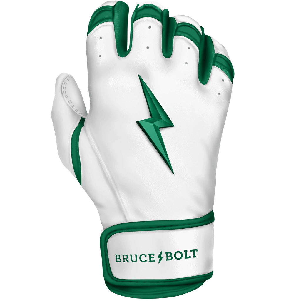 Step up your game with the Bruce Bolt Premium Pro Chrome Short Cuff Batting Gloves in Green. These gloves are crafted for peak performance, combining high-quality materials with superior craftsmanship to provide the best fit and durability on the market.
