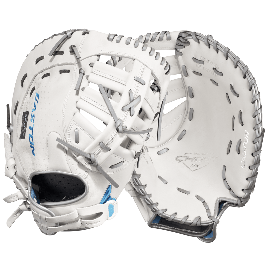 Easton's Ghost series is a symbol of elite fastpitch play. The Ghost NX Glove fits right in. On the outside, the Game Ready Diamond Pro Steer leather and Flex Notch closure system make this glove super soft and easy to handle right away. The Quantum Closure System on the glove back ensures a perfect fit for every player, and the interior Ax Suede microfiber lining creates unmatched comfort and durability. On top of all these performance features, the striking white-and-blue colorway and professional-grade silver metallic rawhide lace are sure to turn heads.