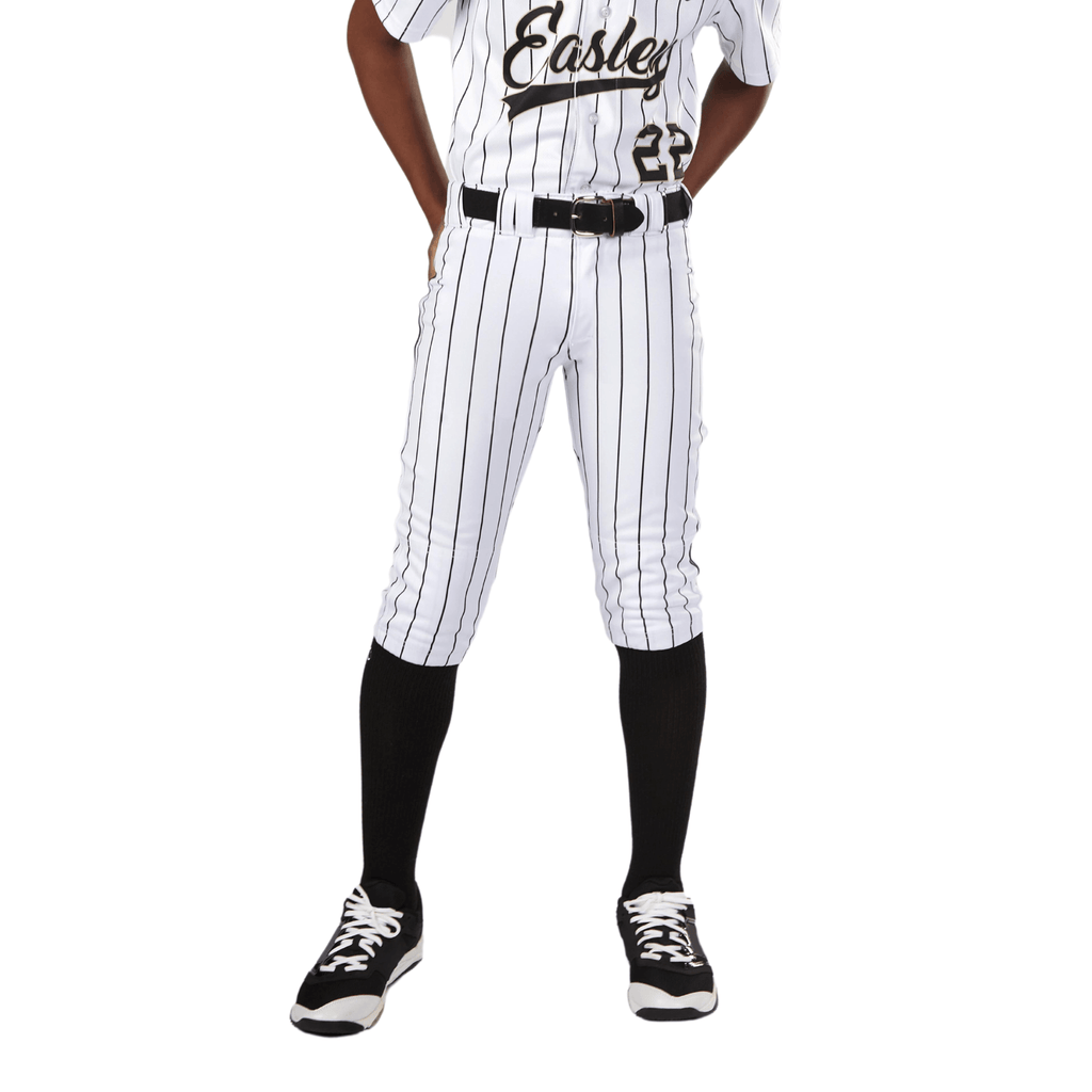 Kick it old school with the EvoShield Salute Pinstripe Knicker. Designed to showcase your stirrups or high socks, these 100% polyester double knit pants feature a pair of set-in back pockets, double-layered knees and a double snap closure in a timeless, pinstriped design that feels as good as it looks.