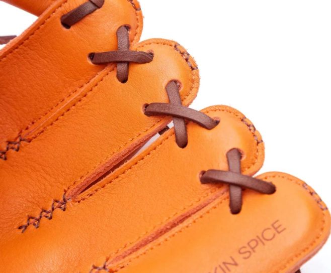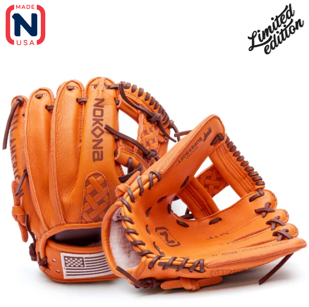 It’s official – the season is here. Introducing the Limited Edition S1 All-American™ Pumpkin Spice series, handcrafted with Nokona’s proprietary Supersoft™ Steerhide leather in unique pumpkin-orange. This light-weight, game-ready series is unmatched in its buttery, soft feel – requiring minimal to no break-in. Made with Nokona’s exclusive Precision Edge™ construction, the S1 All-American™ gamers have great feel and ball control, a smooth pocket, and optimal leather integrity for top performance and durability. A high-performing series specifically developed for youth and travel ball players. The Limited Edition S1 All-American™ Pumpkin Spice features a pie-crust lattice design stamped on the finger pad, and contrasting laces in warm chocolate brown. Taking it to the next level, this S1 All-American™ series comes with Limited Edition Pumpkin Spice-scented Nokona Leather Treatment. Treat your glove with the original ballglove conditioner – infused with that sweet, spicy fragrance of fall. America’s Pastime. American Made.™