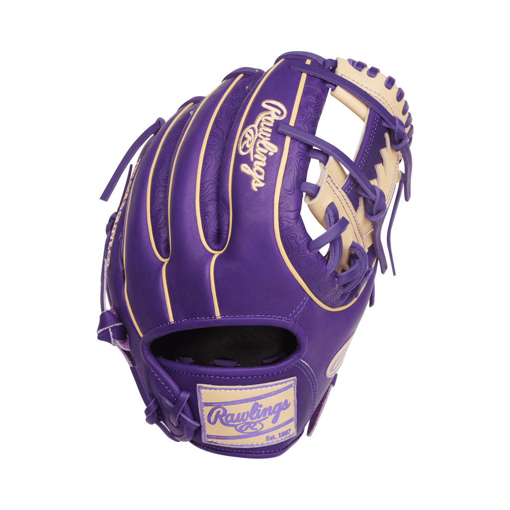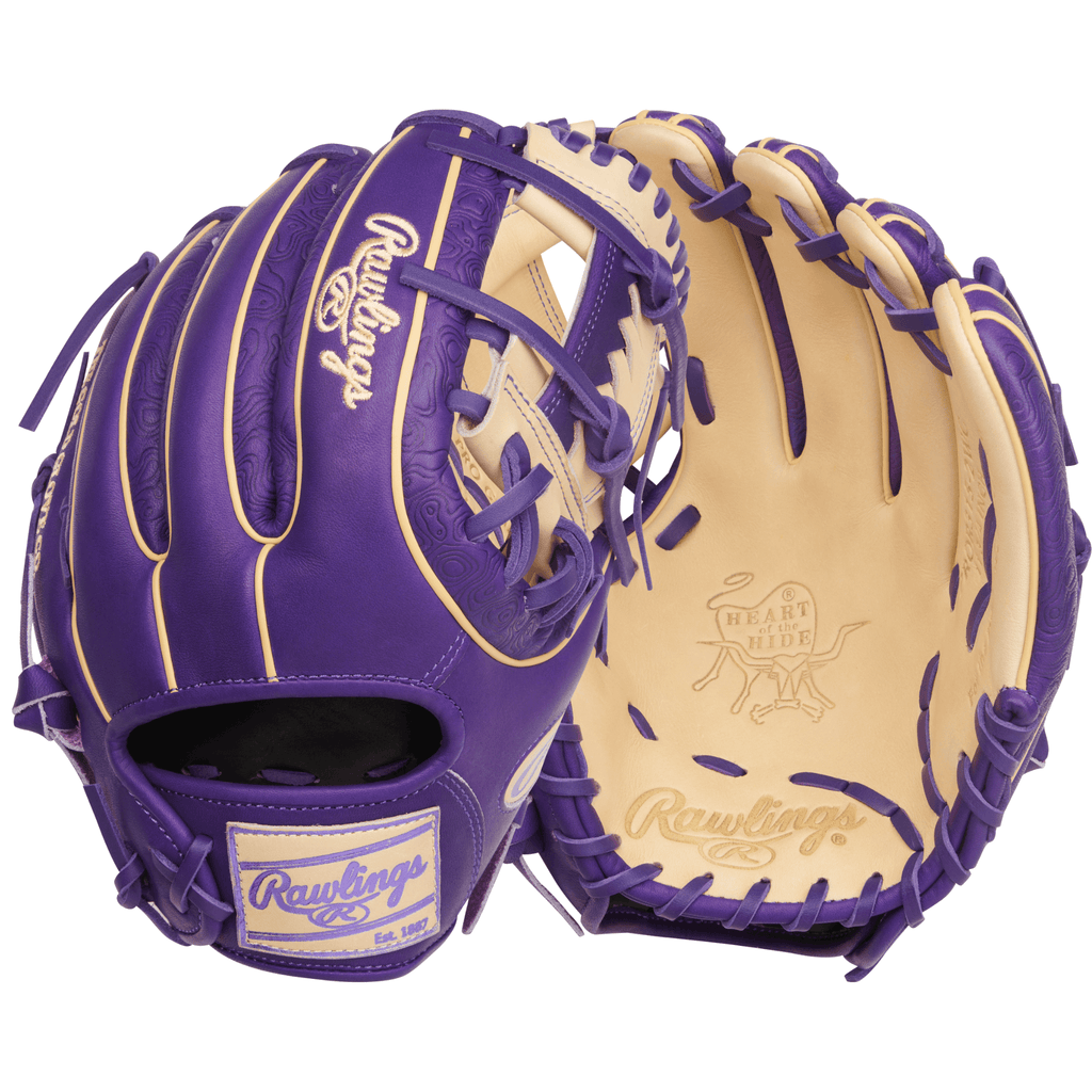 Bring elite-level confidence to every play with the Rawlings Heart of the Hide 11.75-Inch Infield Glove, featuring a smooth Camel and Purple colorway and the highly trusted 31 pattern. This glove blends classic HOH craftsmanship with modern flair, making it a favorite for ballplayers who want style and substance. Built with a Weave I™ web and 11.75-inch length, this glove is perfect for middle infielders and third basemen looking for a balanced pocket and quick, clean transfers. The 31 pattern offers a consistent, shallow pocket feel for lightning-fast reactions and control. Made from world-renowned Heart of the Hide steerhide leather, this glove delivers unmatched durability, structure, and feel. Inside, you’ll find a padded thumb sleeve and deer-tanned cowhide lining designed for all-day comfort and performance. Make your mark on the infield with the Rawlings Heart of the Hide 11.75-Inch Infield Glove.