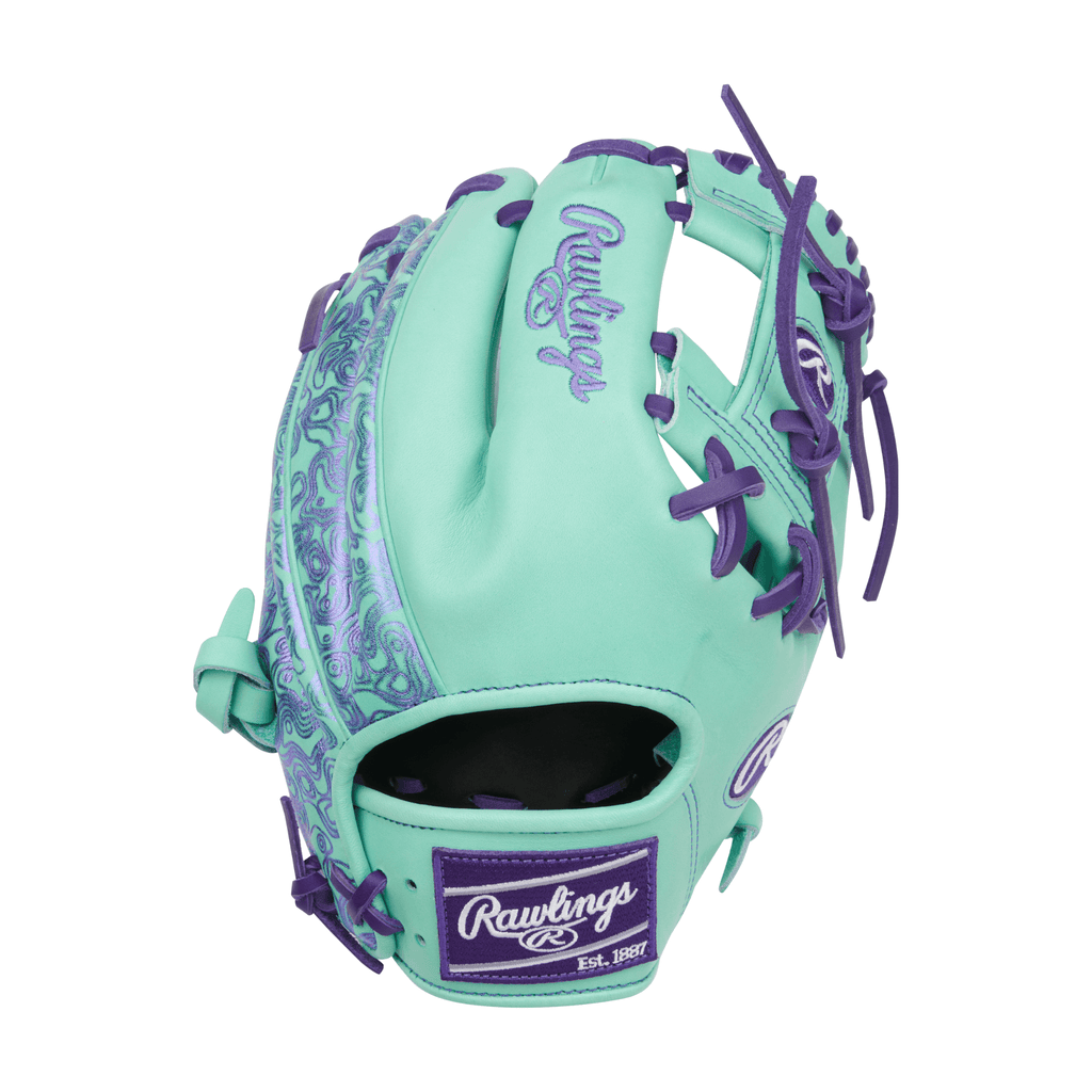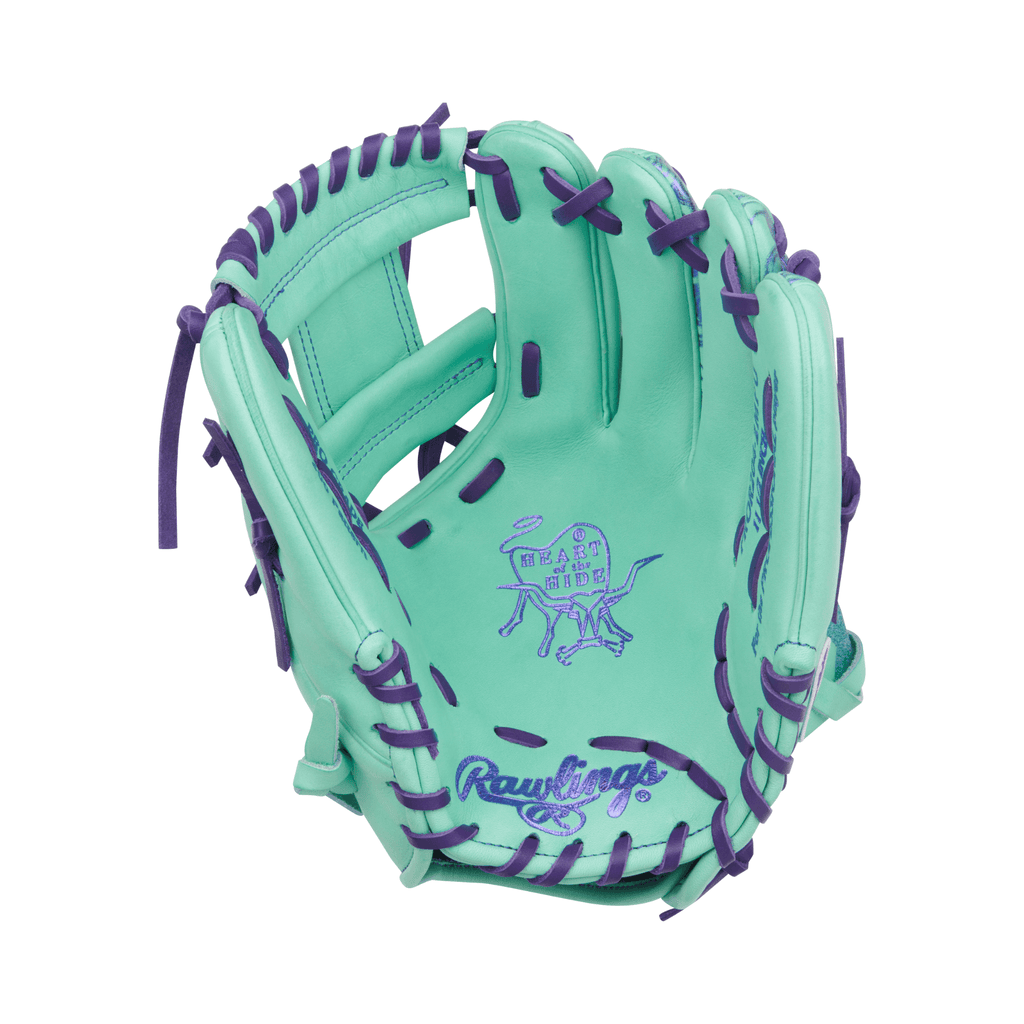 The Rawlings Heart of the Hide 11.5" Mint/Purple glove is built for players who want professional performance, standout style, and reliable comfort every inning.