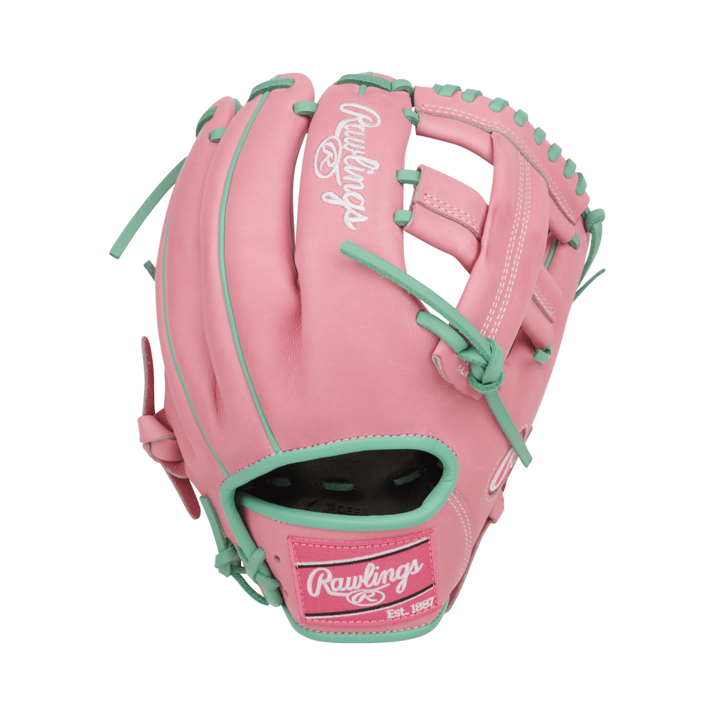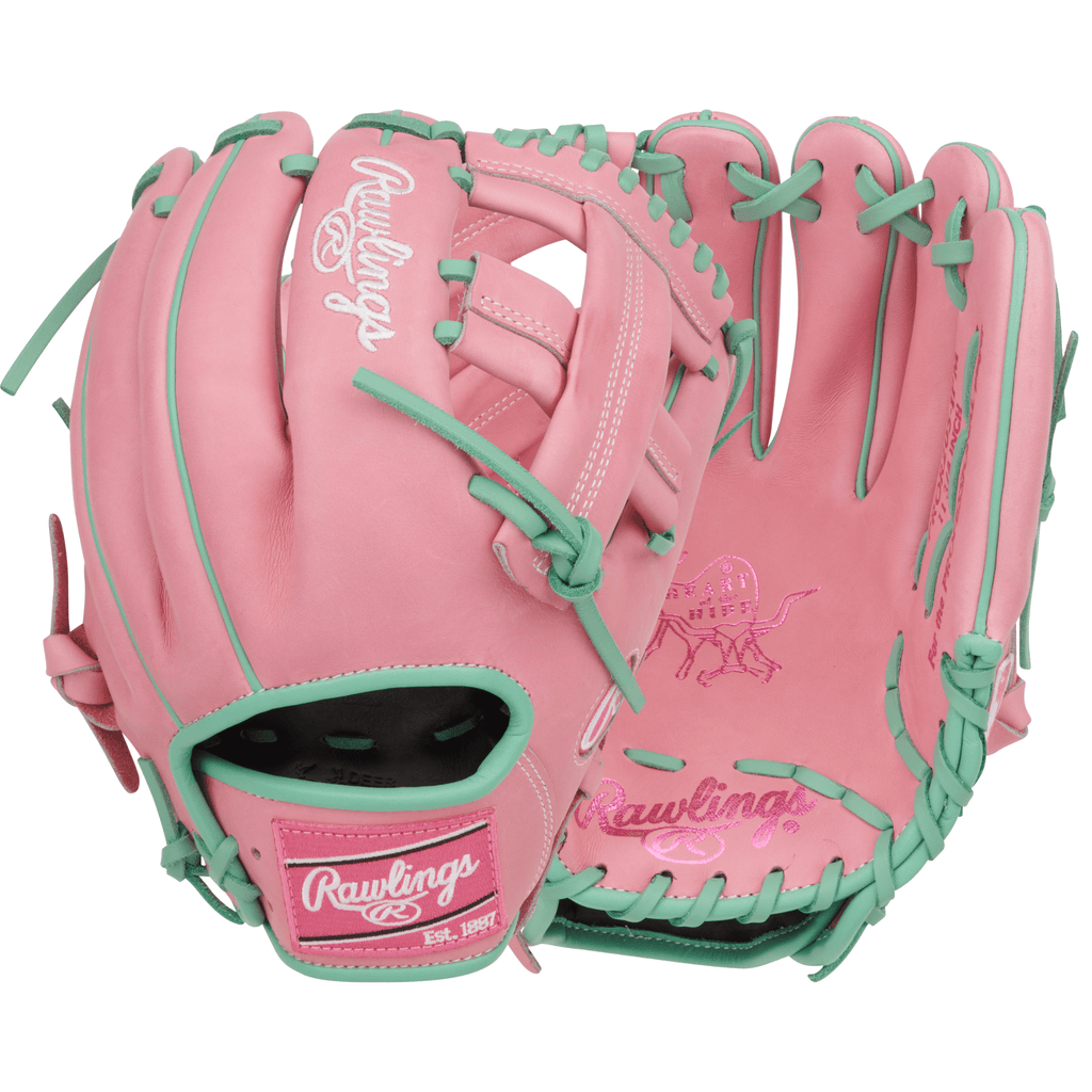 The Rawlings Heart of the Hide 11.75" Pink/Mint is built for players who want elite performance, lasting comfort, and vibrant style—making every inning a highlight.