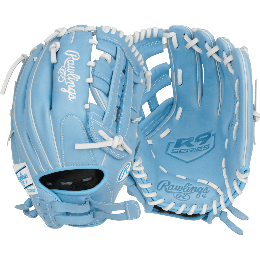 Take your game to the next level with the Rawlings R9 Series Softball Glove in striking Columbia Blue. Designed for adult fastpitch players, this 12-inch glove combines exceptional durability, flexibility, and performance.