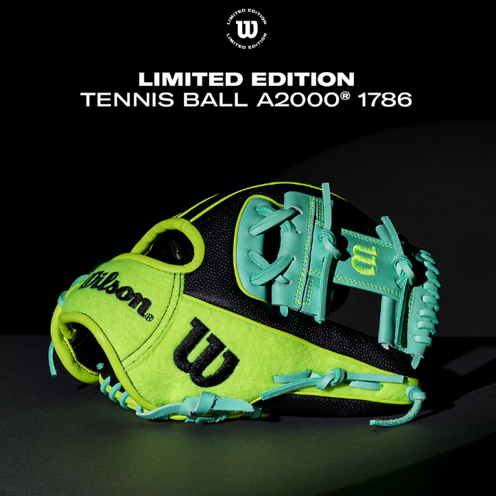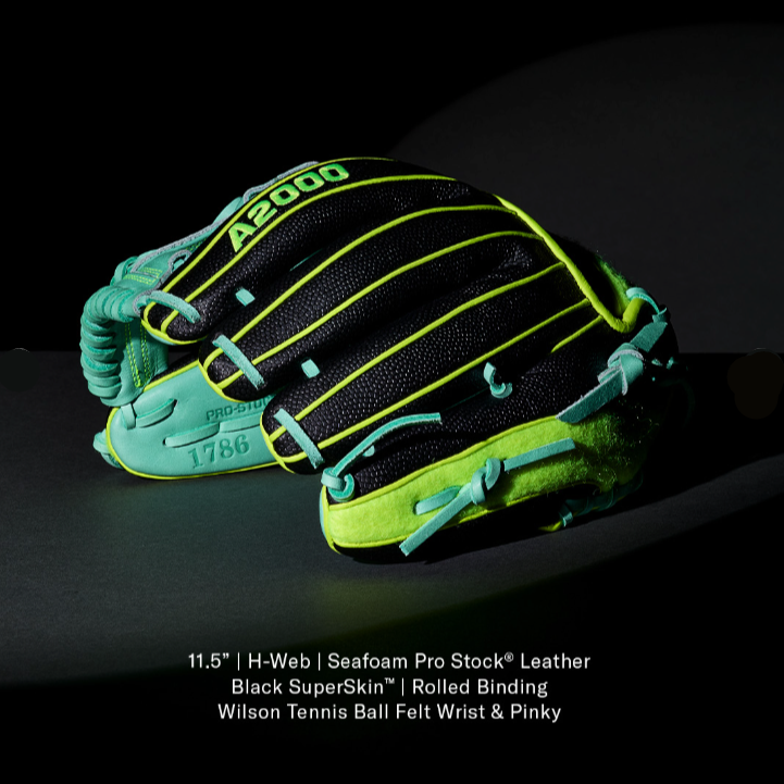 Crafted with Seafoam Pro Stock® Leather and Black SuperSkin™, the A2000 1786SS delivers lightweight durability and a responsive feel. A unique addition of genuine Wilson tennis ball felt accents the glove exterior, connecting Wilson’s legendary tennis heritage with its world-class baseball craftsmanship.